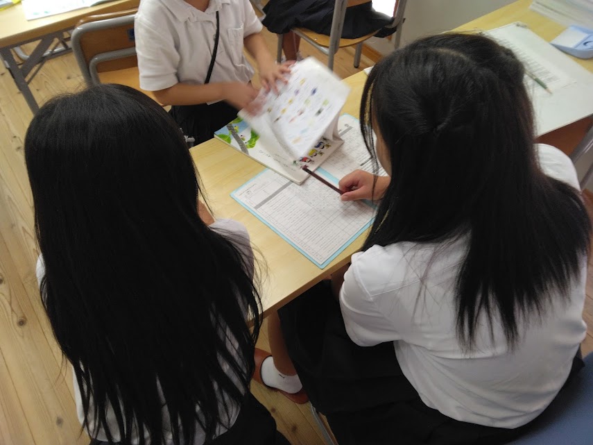 小さな世代循環 宿題点検の時間帯に当児童クラブ出身の中学生が遊びにきてくれました。ちょっと宿題点検の一部を体験してもらいました。やがては当児童クラブ出身の高校生が自由時間などでアルバイトにきてくれるようになると嬉しいですね。