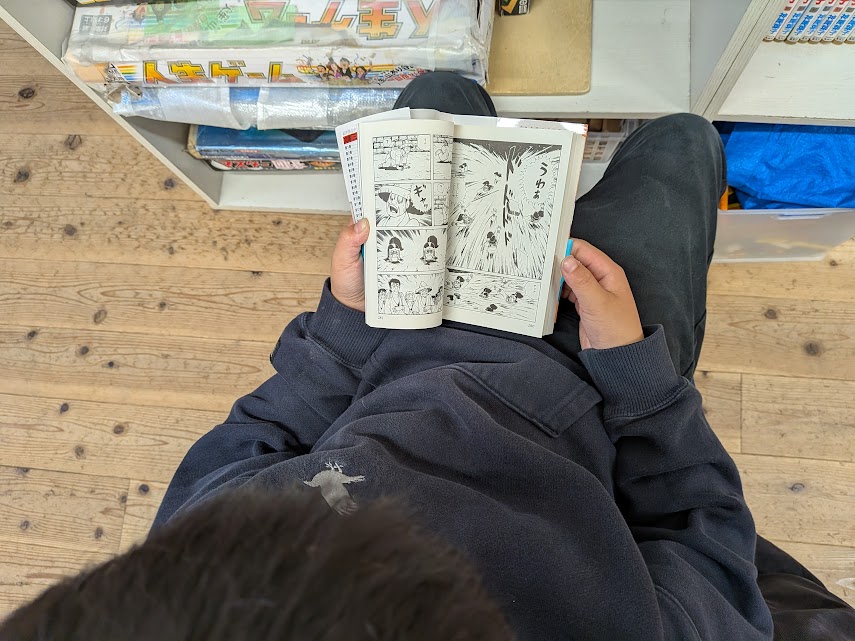3年前から置いてある『水滸伝』の漫画を読む子どもが初めて現れました。おもしろいと言ってました。 -昨日の写真ー
