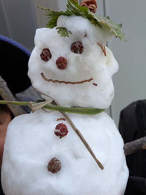 先週に子どもが雪をかき集めて可愛い雪だるまをつくりました。