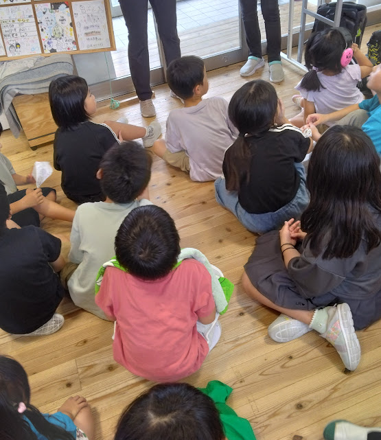 本日延長時間レッスンは2.3年生器械運動と2年生算数国語教室とがありました。夏休みバージョンの壁飾りです。全体清掃時間の前の打合せの様子です。